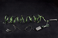 Гирлянда состоит из 10 нитей медной проволоки длиной 2 метра, каждая собраны в пучок и в верхней части соединены в удобный пластиковый держатель. Поставьте держатель на верхушку елки, а нити пустите вниз вдоль елки - пару минут и ваша композиция готова.